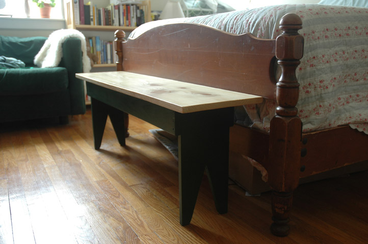 This Shaker-inspired bench has a wide variety of uses. I have put it at the foot of the bed, in the hall, as a coffee table, and as seating at the kitchen table. The design is pared down to the essentials: a top, two side stretchers, and two legs. The only ornament is the inverse V of the legs. Benches like this one were commonly used in Shaker meeting halls, but are equally indispensable in a modern home.