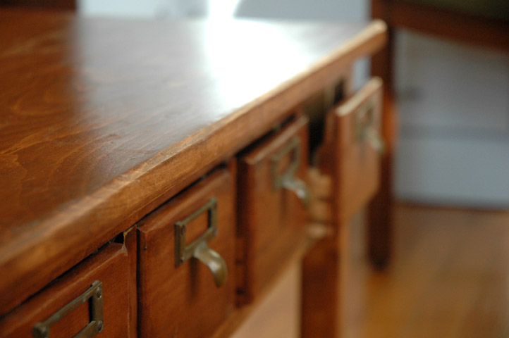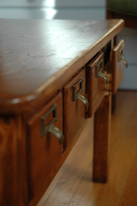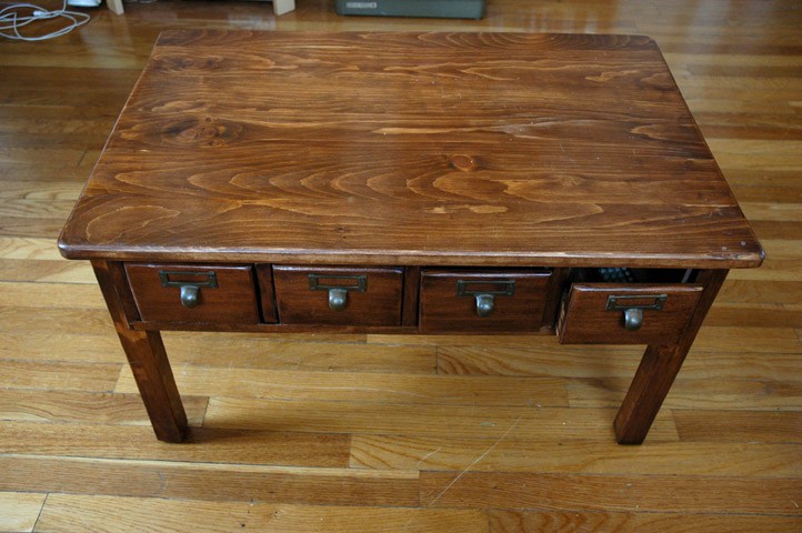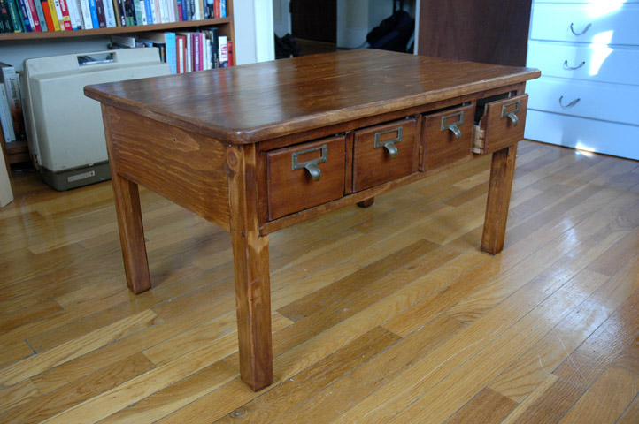I found these four old card catalog drawers in my basement, and decided to use them in a table.